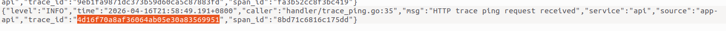 下面是请求 /api/v1/trace/ping 这条链路的日志记录: